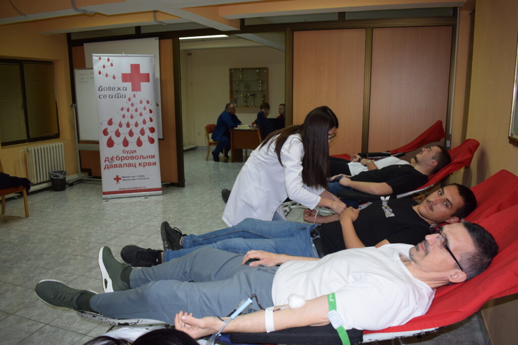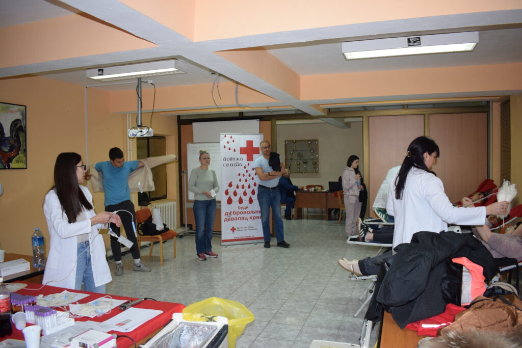 У акцији добровољног давања крви крв је дало 64 добровољних давалаца крви, од чега је 20 ученика крв дало прави пут.